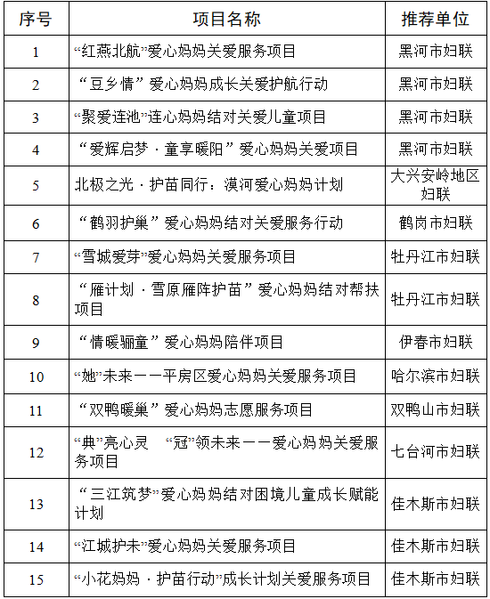 第二批省级爱心妈妈志愿服务项目拟立项名单公示